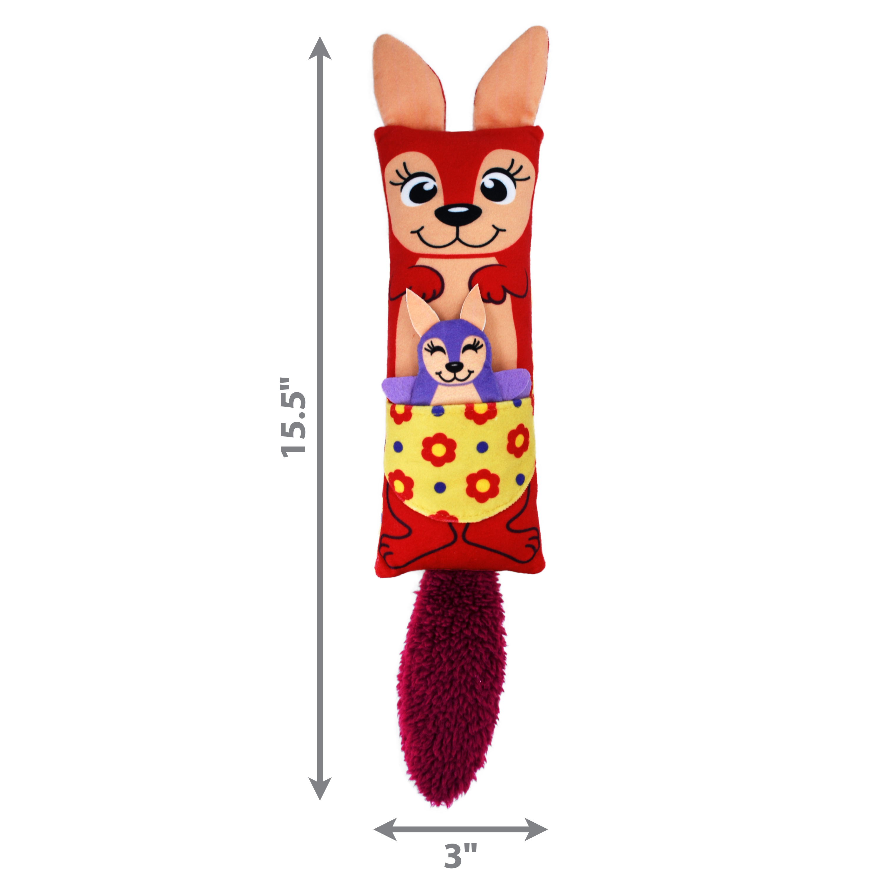 KONG Kanga Kickeroo’s 2-toys-in-1 spark a kitty’s natural instincts while adding two times the fun. The long body is ideally shaped for healthy hind paw kicking and wrestling fun. The lightweight, removable inner baby kangaroo is filled with catnip & crinkle sounds that reward batting play. The crackly pouch continues to engage a cat’s interest while KONG Premium North American Catnip extends the enrichment.