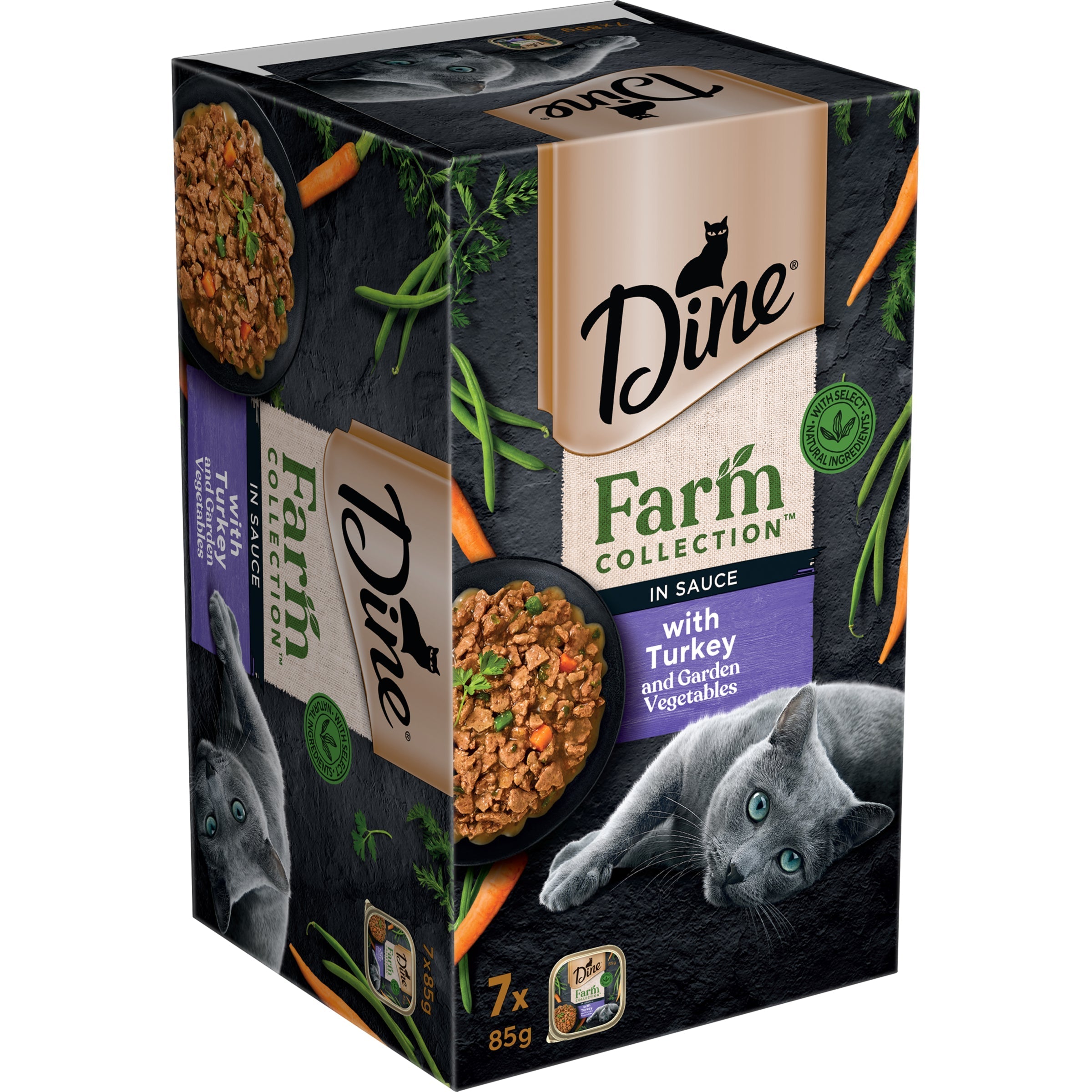 Masterfully prepared with high quality selected natural ingredients and with no added colourants or preservatives, this grain free DINE® Farm Collection™ recipe packed with vegetables will be sure to delight your feline friend. Powerless to Resist™