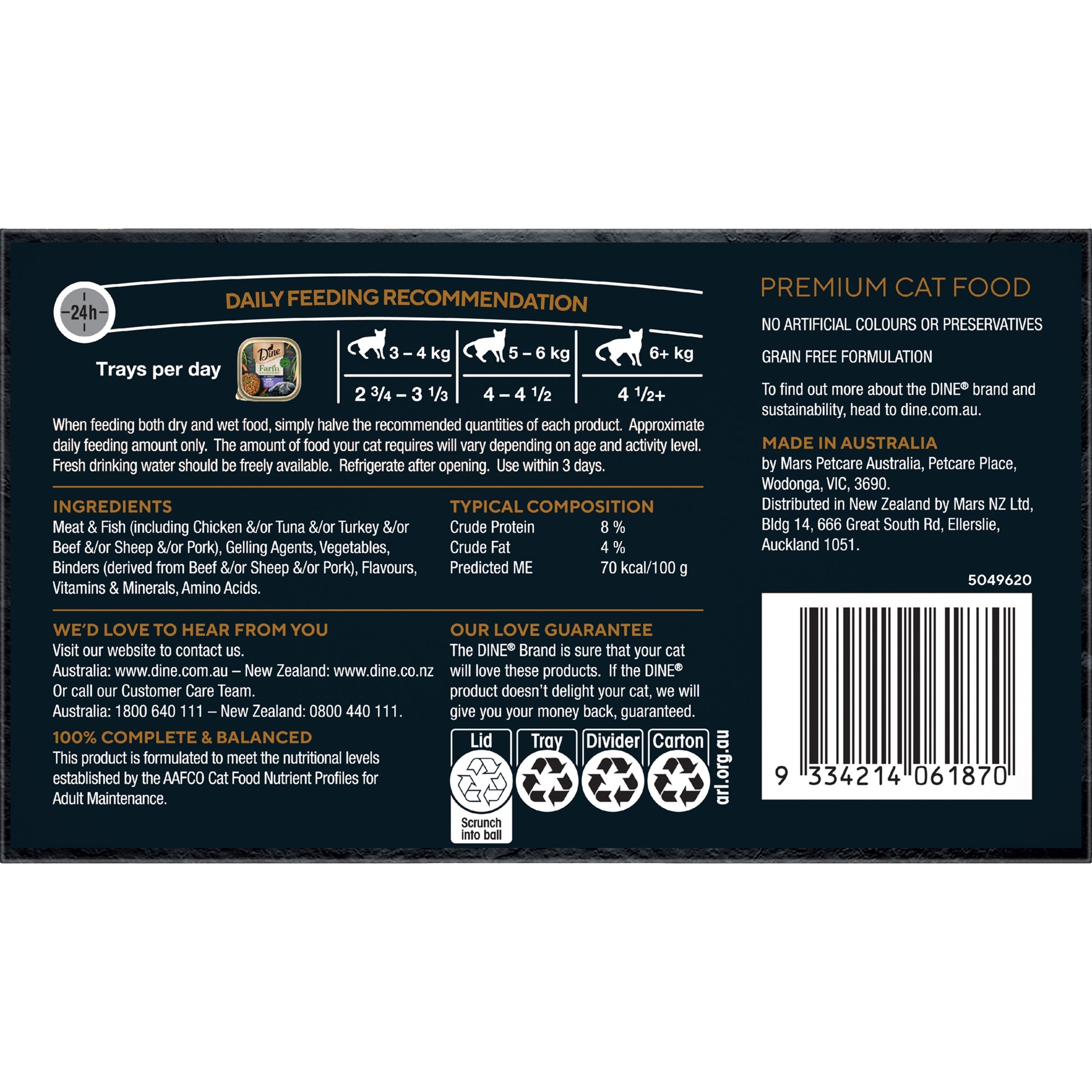 The DINE brand have been preparing flavourful cat food recipes in a variety of tastes and textures for over 40 years. Our menu is sure to satisfy your cat's desire for irresistible daily meal experiences.