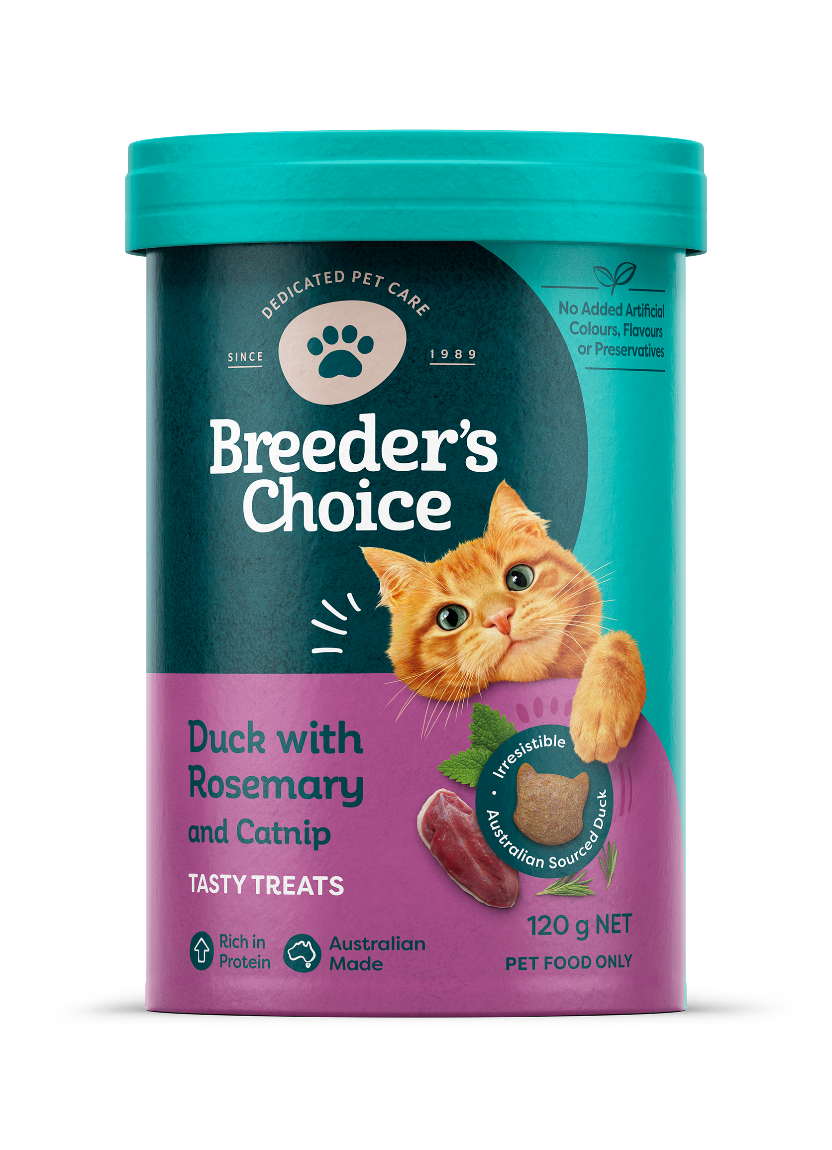 Breeder's Choice Cat Treats Duck with Rosemary & Catnip 120g